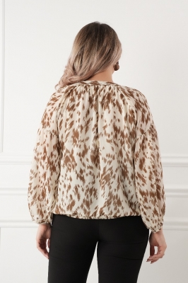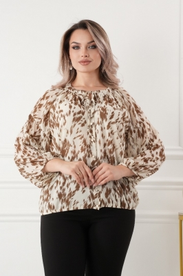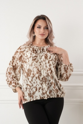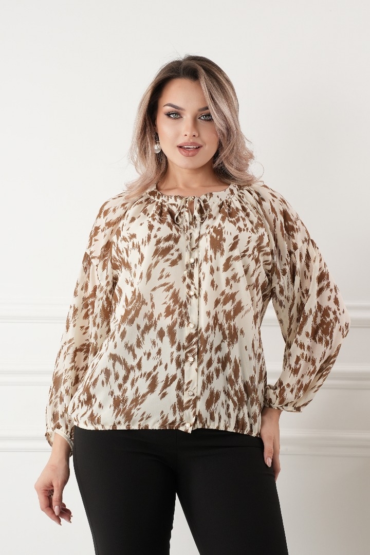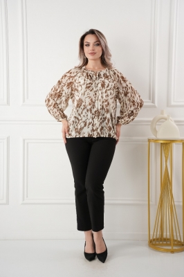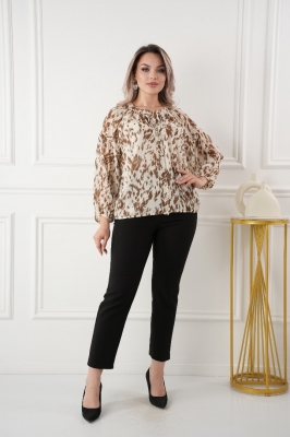 - Блузка застегивается на пуговицы, с обьемными рукавами, низ и рукав изделия присобран на резинку, приятная к телу ткань.