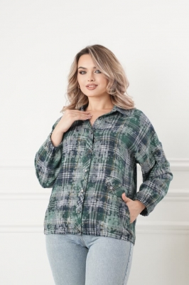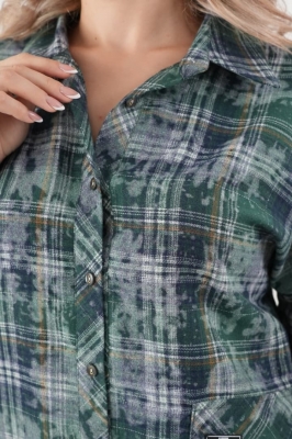 Горловина переда имеет V-образную форму, рукав на резинке, крой блузки продуман до мелочей: он акцентирует внимание на достоинствах фигуры, мягко скрывая недостатки в области талии и бедер в современной расцветке клетка. Это делает модель универсальной и подходящей для различных типов фигур.