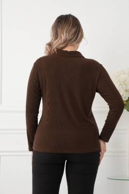 ✨ Комфорт и стиль: Изготовленный из мягкого трикотажа с высоким содержанием вискозы с V-образным вырезом и воротником, эта блузка обеспечивает максимальный комфорт в течение всего дня. Ткань обладает отличной эластичностью, что позволяет свободно двигаться и чувствовать себя уверенно.
