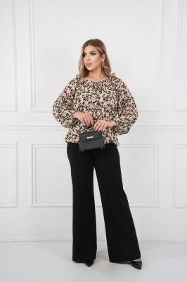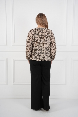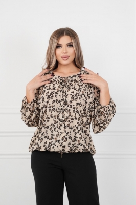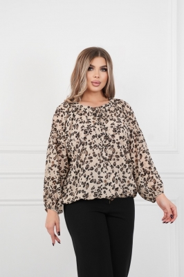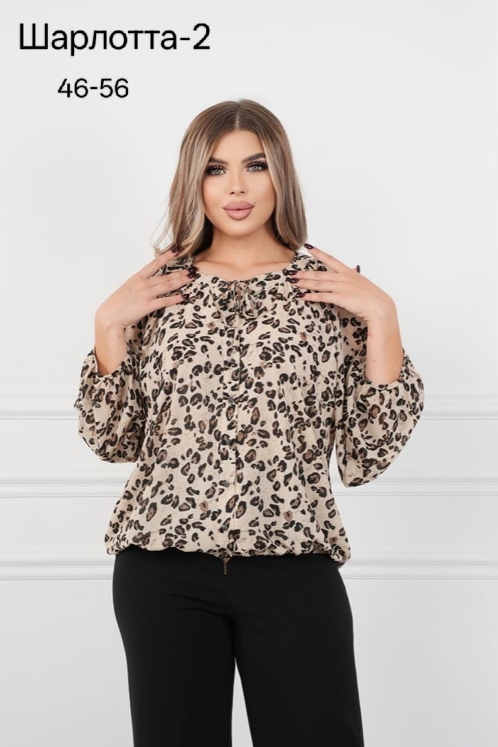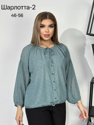 - Блузка застегивается на пуговицы, с обьемными рукавами, низ и рукав изделия присобран на резинку, приятная к телу ткань.