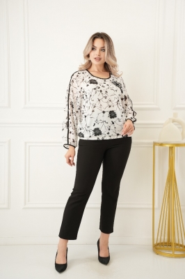Крой блузки продуман до мелочей: он акцентирует внимание на достоинствах фигуры, мягко скрывая недостатки в области талии и бедер. Это делает модель универсальной и подходящей для различных типов фигур.