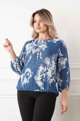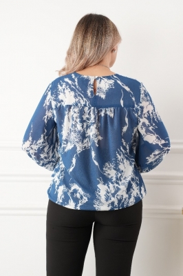 Крой блузки продуман до мелочей: он акцентирует внимание на достоинствах фигуры, мягко скрывая недостатки в области талии и бедер. Это делает модель универсальной и подходящей для различных типов фигур.