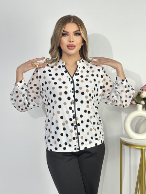 Ориентированный на российские стандарты, крой блузки прекрасно подчеркивает достоинства фигуры и скрывает ее недостатки, что делает ее идеальным выбором для женщин с различными типами телосложения.