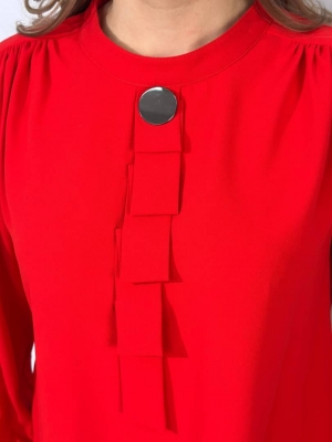 Трендовая блузка Каскад.Ищете идеальную блузку, которая станет незаменимой частью Вашего гардероба? Представляем Вам нашу шикарную блузку Каскад с прямым кроем и круглым вырезом! Эта премиум блузка с длинным рукавом идеально вписывается в модные тренды 2025-2026 годов и доступна в размерах 46-56. Изготовленная из вискозы премиального качества, из ткани Креп Шелк, блузка обеспечивает невероятный комфорт в течение всего дня, практически не мнется и не электризуется. Гипоаллергенная ткань бережно относится к Вашей коже, не вызывая раздражений, что делает ее идеальным выбором для любого случая. Эта блузка станет шикарным вариантом как для офисного стиля, так и для повседневной носки. Она отлично подходит для работы, школы, деловых встреч, а также станет изысканным нарядом для вечеринки или корпоратива. Много актуальных расцветок. Дополните свой образ стильным акцентом — круглая брошь, которая снимается, придаст Вашему наряду уникальности и оригинальности, позволяя Вам экспериментировать со стилем. На фотографии модель ростом 170 см демонстрирует, как блузка Каскад подчеркивает женственность силуэта, создавая элегантный и утонченный образ. С блузкой Каскад Вы сможете быть разной и оставаться собой — выбирайте стиль Dinoel&Alona и выделяйтесь из толпы! Не упустите возможность добавить этот прекрасный элемент в Ваш гардероб!