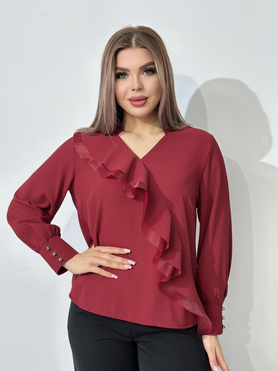 Трендовая шелковая блузка Волан 1.Ищете идеальную блузку, которая станет незаменимой частью Вашего гардероба? Представляем Вам нашу шикарную блузку Волан с V-образным вырезом и воланами ! Эта премиум блузка с длинным рукавом идеально вписывается в модные тренды 2025-2026 годов и доступна в размерах 46-56. Изготовленная из вискозы премиального качества, блузка обеспечивает невероятный комфорт в течение всего дня, практически не мнется. Гипоаллергенная ткань бережно относится к Вашей коже, не вызывая раздражений, что делает ее идеальным выбором для любого случая. Эта блузка станет шикарным вариантом как для офисного стиля, так и для повседневной носки. Она отлично подходит для работы, школы, деловых встреч, а также станет изысканным нарядом для вечеринки или корпоратива. Красиво оформленные воланы придаст Вашему наряду уникальности и оригинальности, позволяя Вам экспериментировать со стилем. На фотографии модель ростом 170 см демонстрирует, как блузка Волан 2 подчеркивает женственность силуэта, создавая элегантный и утонченный образ. С блузкой Волан 2 Вы сможете быть разной и оставаться собой — выбирайте стиль Dinoel&Alona и выделяйтесь из толпы! Не упустите возможность добавить этот прекрасный элемент в Ваш гардероб!