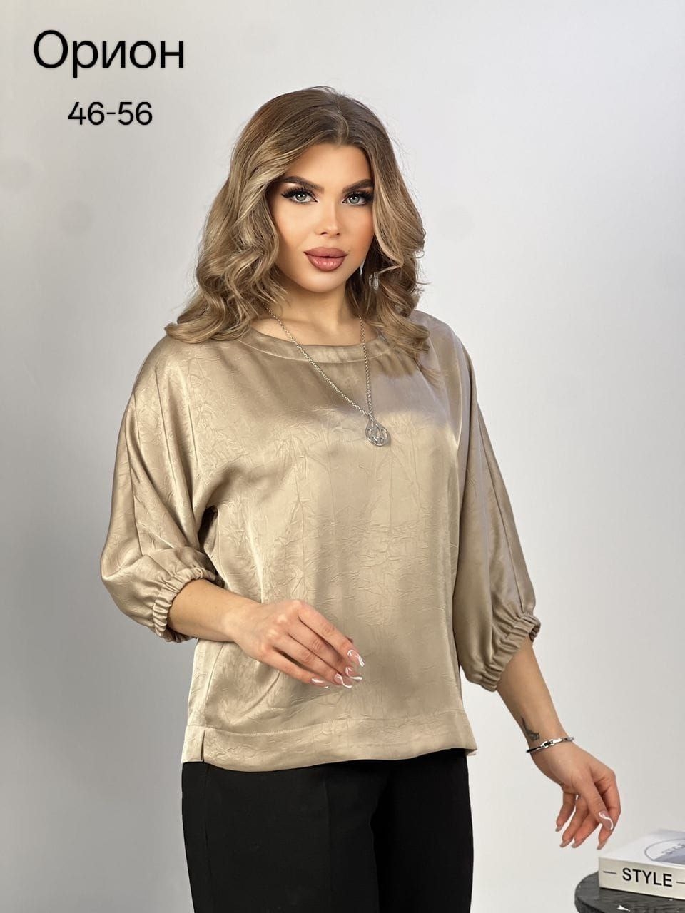 Элегантная блузка "Орион" — это идеальный выбор для женщин, стремящихся сочетать стиль и комфорт в своем гардеробе. Доступная в размерах от 46 до 56, эта блузка подходит для различных типов фигур, обеспечивая идеальную посадку. Блузка из армани шелка оснащена обьемными рукавами 3/4 на резинке, что придает ей стильный, нарядный и утонченный вид. Дизайн создает интересный силуэт и добавляет нотку современности. К каждому изделию-украшение. Полуприлегающий крой подчеркивает достоинства фигуры, акцентируя внимание на талии и бедрах, при этом скрывая возможные недостатки. Это делает блузку отличным вариантом как для деловых встреч, вечерних, так и для повседневной носки.