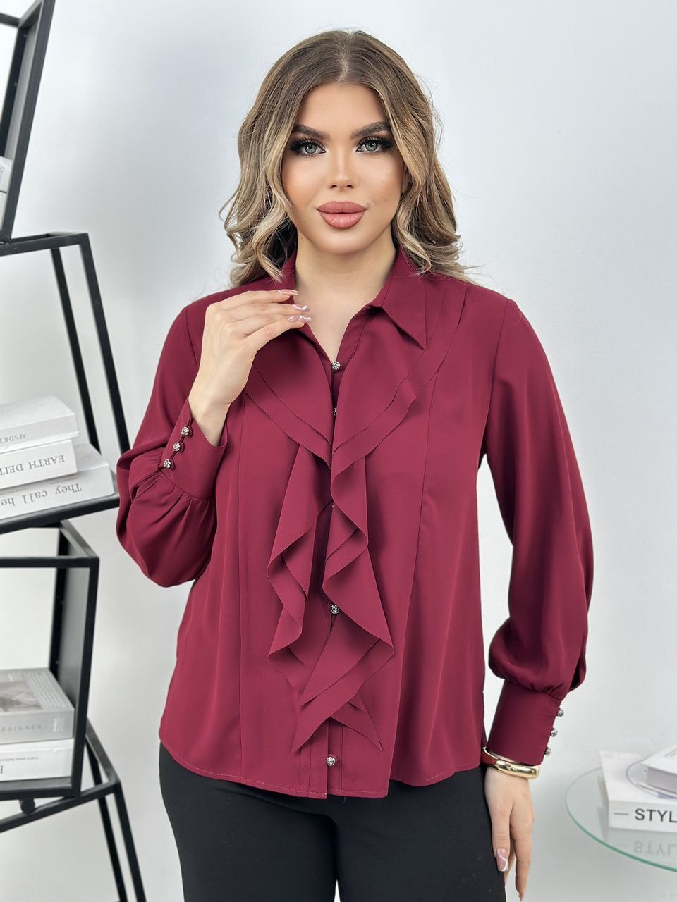 Трендовая шелковая блузка Волан 2.Ищете идеальную блузку, которая станет незаменимой частью Вашего гардероба? Представляем Вам нашу шикарную блузку Волан с V-образным вырезом и воротником! Эта премиум блузка с длинным рукавом идеально вписывается в модные тренды 2025-2026 годов и доступна в размерах 46-56. Изготовленная из вискозы премиального качества, блузка обеспечивает невероятный комфорт в течение всего дня, практически не мнется. Гипоаллергенная ткань бережно относится к Вашей коже, не вызывая раздражений, что делает ее идеальным выбором для любого случая. Эта блузка станет шикарным вариантом как для офисного стиля, так и для повседневной носки. Она отлично подходит для работы, школы, деловых встреч, а также станет изысканным нарядом для вечеринки или корпоратива. Красиво оформленные воланы придаст Вашему наряду уникальности и оригинальности, позволяя Вам экспериментировать со стилем. На фотографии модель ростом 170 см демонстрирует, как блузка Волан 2 подчеркивает женственность силуэта, создавая элегантный и утонченный образ. С блузкой Волан 2 Вы сможете быть разной и оставаться собой — выбирайте стиль Dinoel&Alona и выделяйтесь из толпы! Не упустите возможность добавить этот прекрасный элемент в Ваш гардероб!