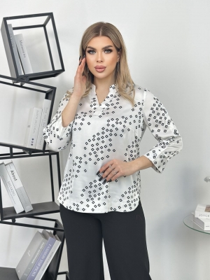 Ориентированный на российские стандарты, крой блузки прекрасно подчеркивает достоинства фигуры и скрывает ее недостатки, что делает ее идеальным выбором для женщин с различными типами телосложения.