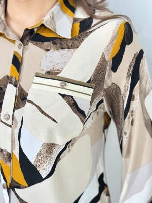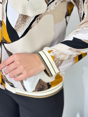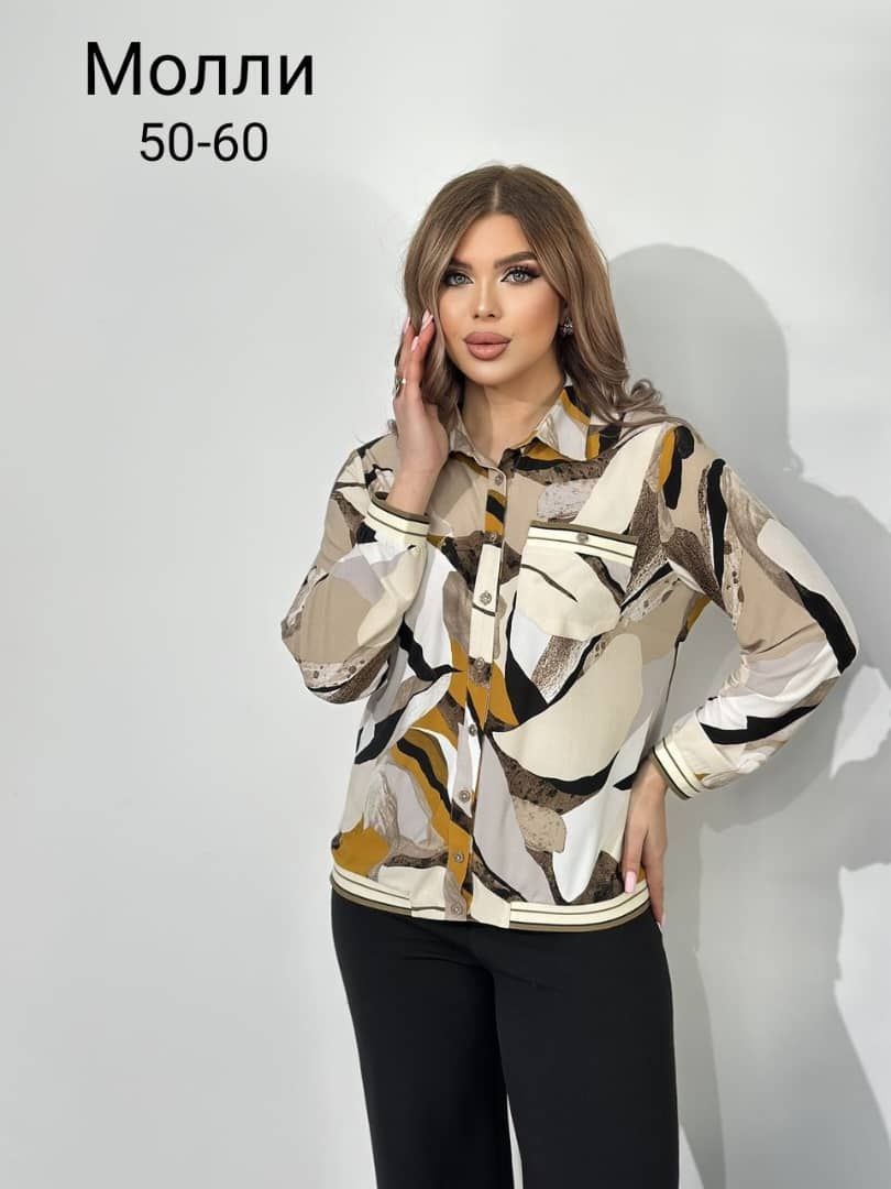 - Трикотажная блузка-бомбер рубашечного покроя в размерах 50-60, застежка - на петли и пуговицы.
